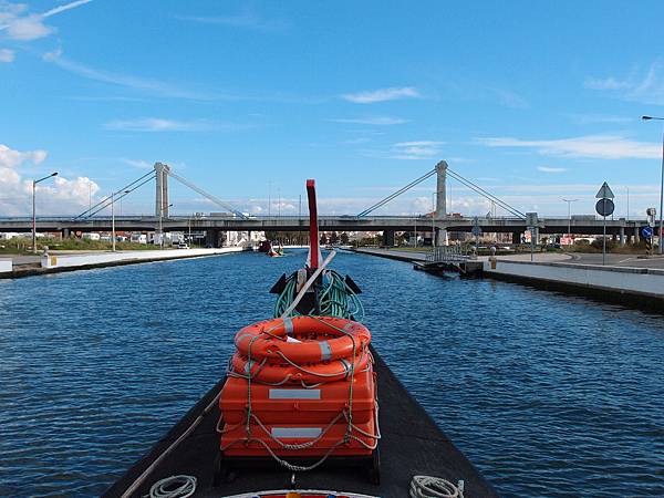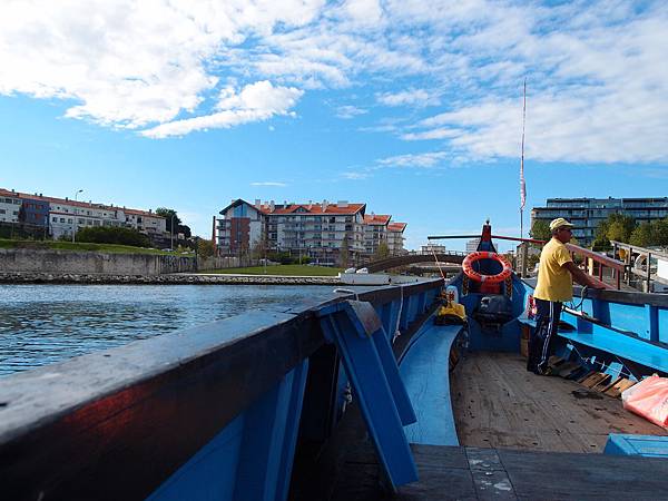 原本打算到市中心坐仿貢多拉 Moliceiro 遊船河, 但在酒店前有個小碼頭, 職員在招客, 船費每人€7跟市中心差不多, 於是上船遊河, 導覽員用簡單英文解說。