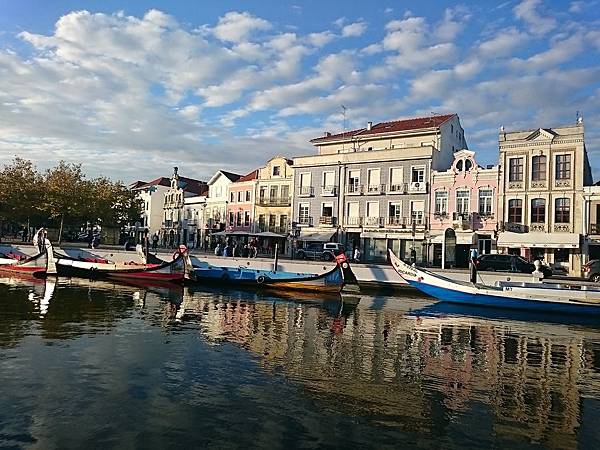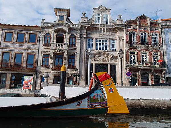 再駛往市中心外圍後沿路折返, 遇到其他船的船頭各有不同特色的繪畫, 不到一小時回到起點。與威尼斯貢多拉相比, 這裡小了一份浪漫, 沒有船夫唱歌, 但景觀比較開揚, 不是威尼斯狹窄的水道及擠滿圍觀的遊客。加上2人只需€14, 相比威尼斯貢多拉40 分鐘索價 €70-100, 這裡的CP值超高, 推薦來Aveiro玩一定要試試。