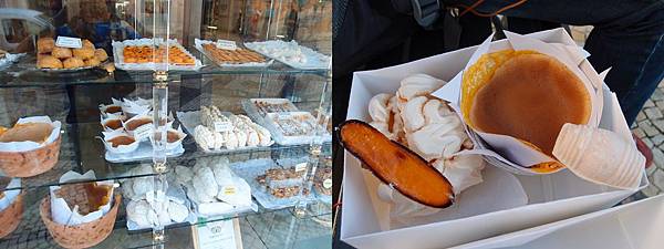 回到起點落船, 開始漫步四圍逛。可能是平日關係, 遊人不多, 四圍環境幽靜。不久便到達著名的甜品店 Confeitaria Peixinho。廚窗糕點琳琅滿目, 隨便點了幾款共€4, 當然包括Aveiro特產 ovos moles 軟蛋糕, 小小木桶形狀,內餡是由蛋黃及奶油, 不是很甜, 值得一試。