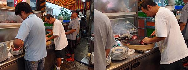 阿裕牛肉涮涮鍋位處有點偏僻, 離台南市區大概要30分鐘車程, 剛好奇美博物館可以乘巴士紅4線到田厝站, 步行1分鐘便可到達。老闆及職員站在店門口現切牛肉。