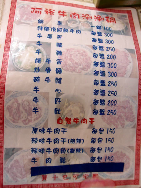 又到晚餐時間, 到台南不得不吃溫體牛。早上無緣嘗試永樂市場的牛肉湯, 更期待晚上的阿裕牛肉涮涮鍋。