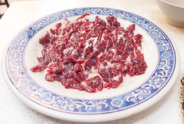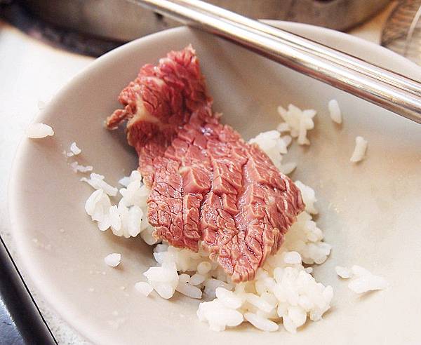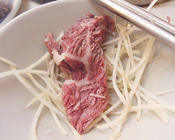 每片牛肉有一點厚度, 但只需稍微涮4-5秒, 還帶點粉紅色最好吃。牛肉真的很鮮甜又嫩, 柔嫩中又帶一點脆度, 彈牙的口感, 每嚼一口都充滿牛肉香。雖然有醬料區自助取用, 但只加一點薑絲不沾醬更能吃到牛肉的甜味。