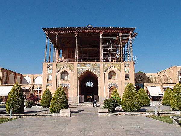 午餐後再到阿里卡普宫 (Kakh-e Ali Qapu, عالی قاپو), 位於希克斯清真寺正對面, 樓高6層, 可惜剛好正在修葺。