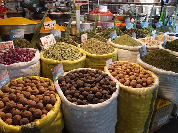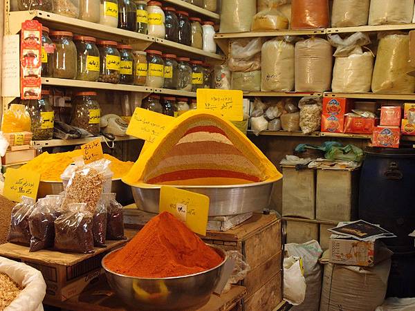 最吸引是香料店, 我們買了一點玫瑰花 (80k Toman/kg 比 Kashan 便宜) 及番紅花 Saffron (13k Toman/2克), 另外老婆還買了披肩 (32k Toman)。