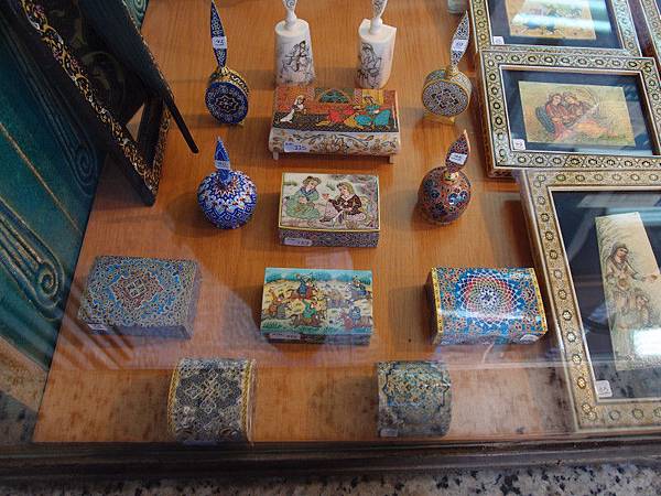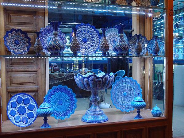 廣場四周很多售賣伊朗工藝品的手信店, 例如伊朗藍色彩繪花瓶 及 駱駝骨微繪。