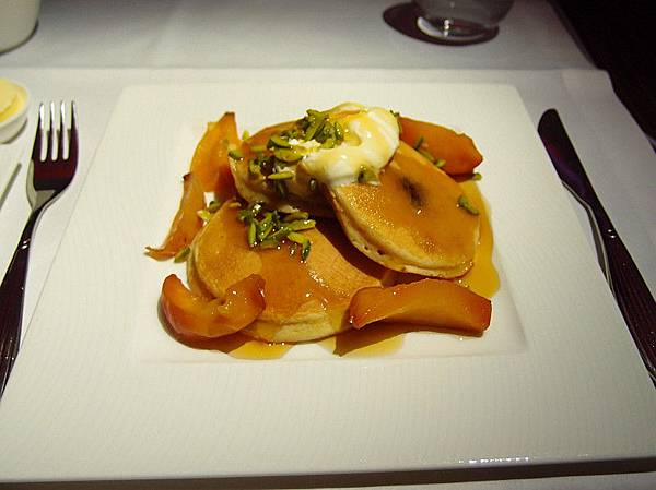 再來主菜 班戟配焦糖桃, 可惜落太多糖漿太甜。