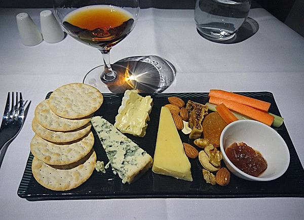 接著是芝士拼盤, 3款芝士品種 (brie, cheddar 及 blue cheese), 配料亦絕不馬虎, 有果仁、無花果、蔬菜條及餅乾, 非常豐富。