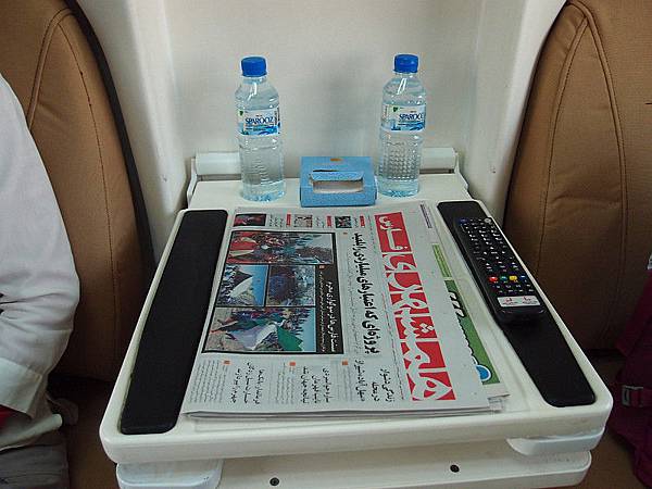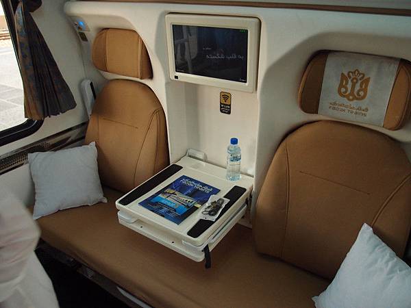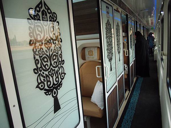 我們不久發現我們的包廂只放了2支樽裝水, 已估算我倆獨霸整個包廂, 果然開車後再沒有其他乘客進入, 我們可以自由活動, 老婆亦可以除下頭巾。不清楚是否特別優惠外國遊客。