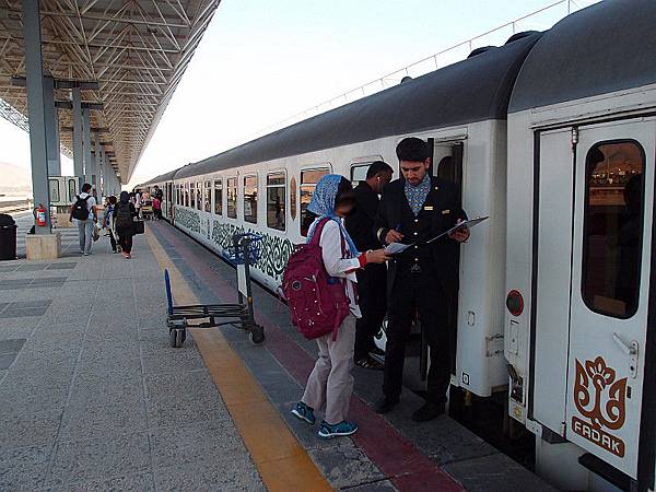 我們乘搭的是最新最豪華的 Fadak 車廂, 只有隔天一班行駛, 所以我們到步伊朗第二天已請 Kashan 酒店幫忙網上訂票 (不收手續費), 只需列印車票便可以上車。Fadak 車廂分經濟/商務/頭等艙, 但全部都是4人臥鋪包廂, 只是食物有差別。經濟艙只提供點心及飲品, 商務艙有提供正餐及飲品。詳情可看官方網頁介紹 (www.fadaktrains.com)。經濟艙車票 135k Toman。我們選擇了商務艙 145k Toman, 只比經濟艙貴HK$20。