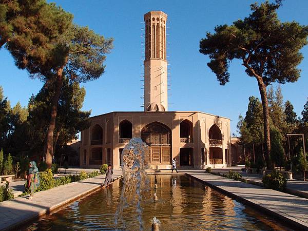 酒店安頓後請職員安排的士 (5k Toman) 往 多萊特阿巴德花園 (Bagh-e Dolat Abad, باغ دولتآباد)。這裡最大特色是高33米的風塔, 是伊朗最高的風塔。古波斯人的天然冷氣系統, 內部是呈現八角形的, 一半是下沉風, 另一半是上升風, 形成對流;底下則有水流經過達到冷卻效果。如果拋起衛生紙便可以看到衛生紙慢慢上升。不經不覺在花園停留差不多2小時才離開, 感覺比 Kashan 的 Fin Garden 值得參觀。