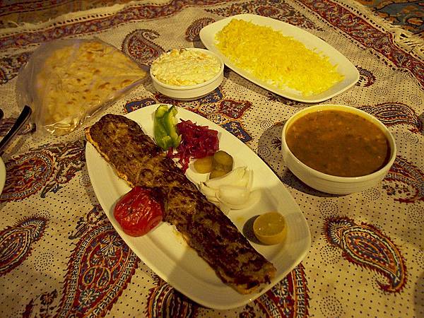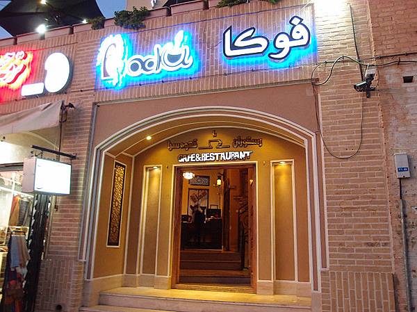 離開花園回酒店 / 阿米爾喬赫馬克清真寺, 因不想搭的士, 跳上一架巴士, 司機表示只能到大街再轉另一路線巴士, 司機還不收我們車費。落車後我們直接步行回酒店, 在聚禮清真寺前大街的 Cafe Fooka 晚餐。這是比較高級的餐廳, 裝潢很有氣氛。我們選擇到天台用餐, 可以遠眺亮燈的清真寺。點了沙律、湯及烤肉, 埋單 46k Toman, 食物尚可以, 但不算太出色。
