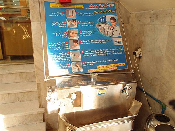 伊朗另外有趣的特色是大部分景點、清真寺、店舖甚至於街上都有飲用水機, 可以隨便飲用或自携水樽。我們嘗試了不同地方的飲水機後腸胃都沒有問題。