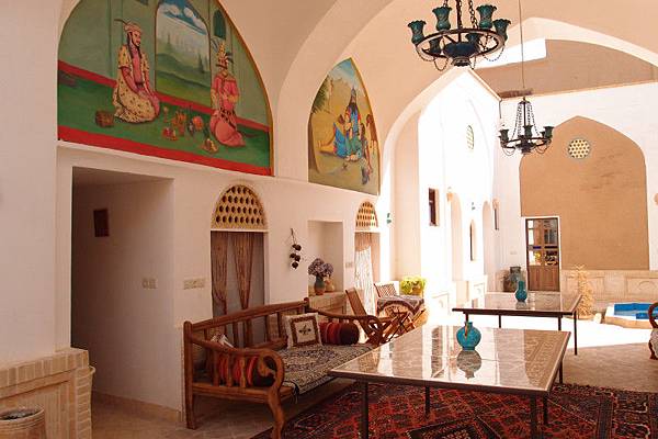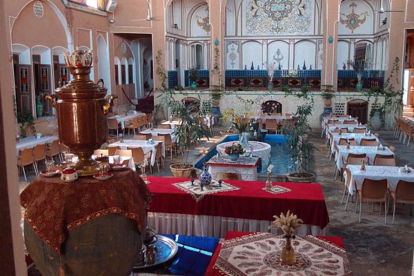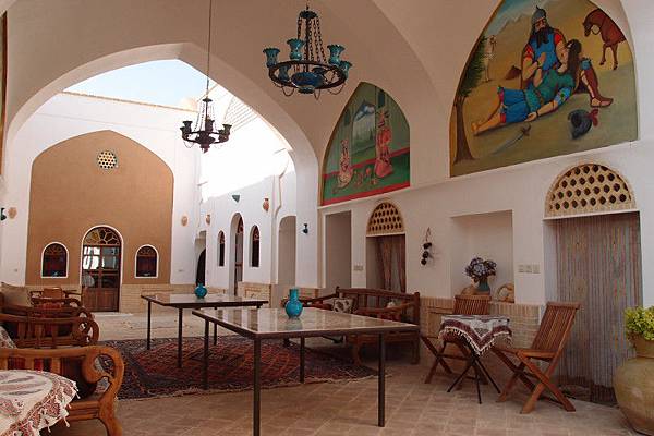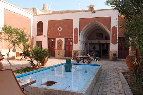職員很友善, 英文亦很好, 可以免費幫忙訂火車票或巴士票。酒店格局保留伊朗傳統大宅特色, 中間水池, 四周波斯風格裝飾。